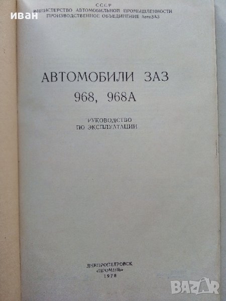 Автомобили ЗАЗ 968,968А - Ръководство по експлоатация - 1978г. → Обява 39625517
