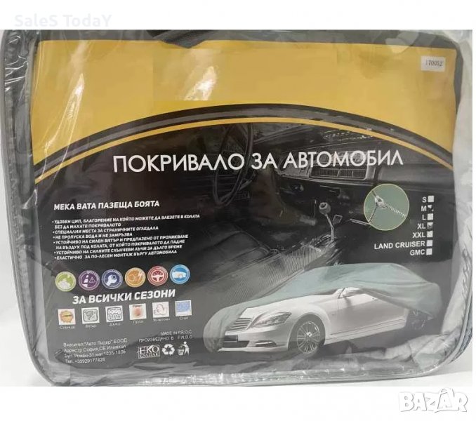 Размери (Д, Ш, В): 483 х 183 х 122 см. Изработен от непромокаеми и еластични материали. Издръжливо на външни условия през зимният и летният период. От вътрешната страна на покривалото се намира ватата, която предпазва боята на автомобила ви. Не се напуква от студ и лед през зимният период или през летният период от слънцето. Предпазва от животинки, прах, дъжд, вятър, силни слънчеви лъчи, сняг и лед. Тип: универсално.