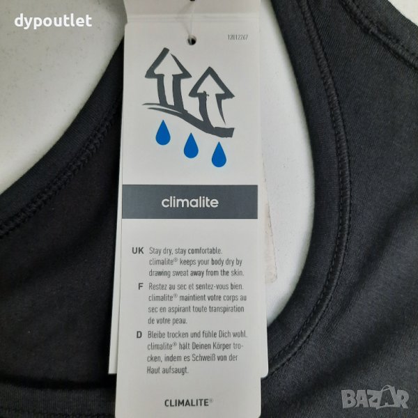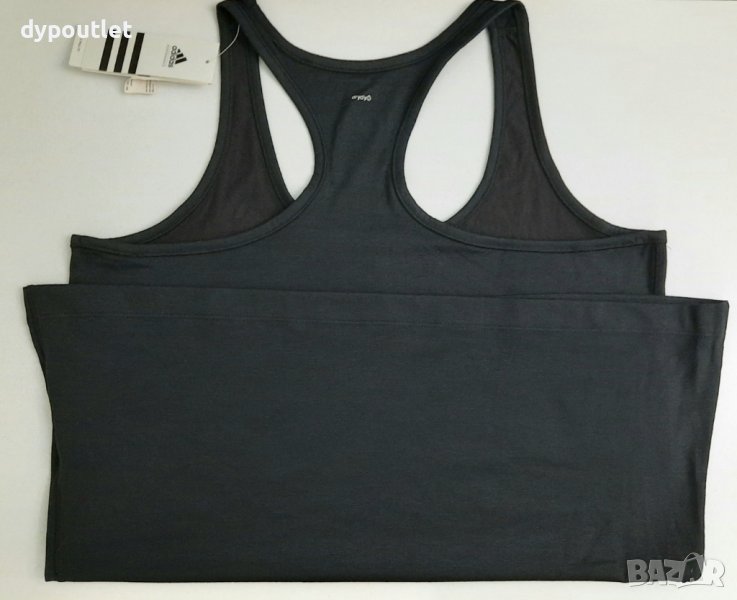 Adidas- Дамски спортен потник, черно, размер L EU. Дамски спортен потник, с овално U-образно деколте, в цвят черен мат. Моделът е изработен от финна влагоотвеждаща материя. Размери: подмишници 48 см., долна част 58 см. и дължина с презрамките 71см..