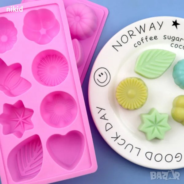 8 едри цвете сърце листо звезда силиконо молд форма дълбоки гипс сапун шоколад → Обява 39629857