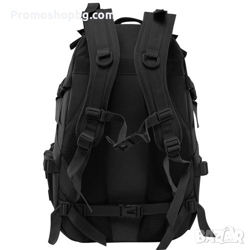 QUICK RELEASE SYSTEM - раницата разполага с профилирани и регулируеми презрамки и 2 колана: на гърдите и бедрата с катарами за бързо освобождаване. Коланът на бедрата може да се сваля. В предната част на раницата и на презрамките са използвани PALS ленти, които позволяват закрепване на оборудване в системата MOLLE.