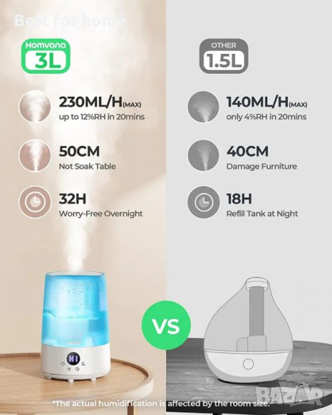 Овлажнител Homvana H101 тих ултразвуков овлажнител 3л с осветление