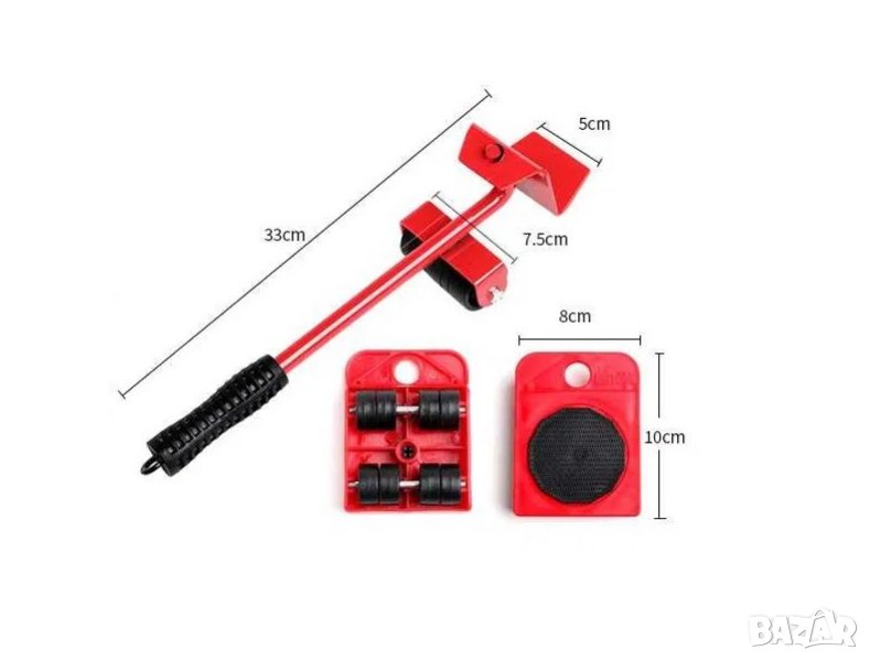 Материал: Стоманено тяло. Колелата са изработени от здрава ABS пластмаса. Състои се от повдигащ лост и подложки с колела, които ви помагат да повдигате и премествате по-лесно мебели,