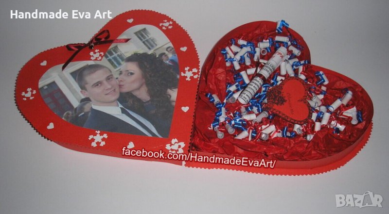 Играта представлява красива кутия-сърце (kутията е голяма 25/25см, изцяло ръчно направена-отвън и отвътре и след празника може да бъде използвана за бижутиера или други дребни ценности), която съдържа 105 папирyса със