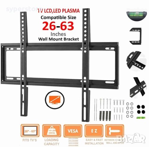 Стойка за телевизор 26-63" за стена универсална Digital One SP00657  200x200/200x400/300x300/400x400, снимка 1 - Други стоки за дома - 39637733 Стойка за телевизор 26-63" за стена универсална Digital One SP00657  200x200/200x400/300x300/400x400, снимка 2 - Други стоки за дома - 39637733 1/2