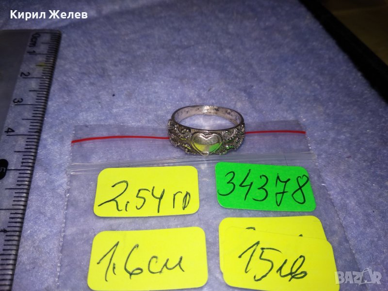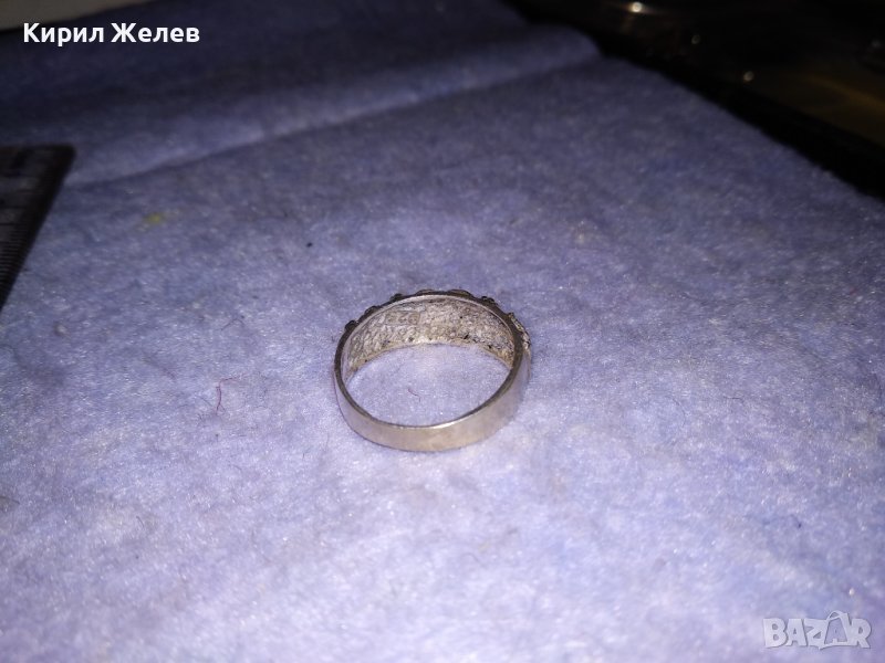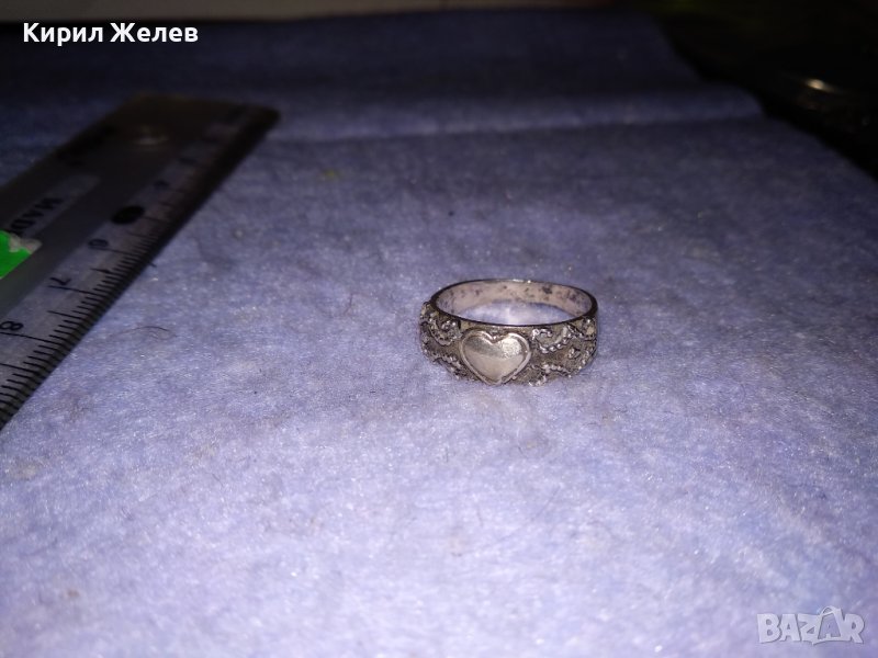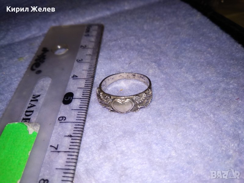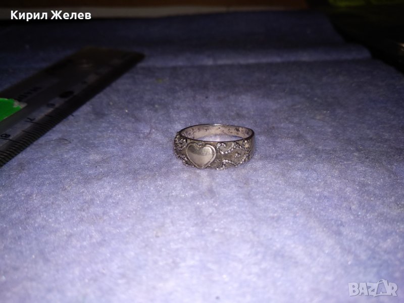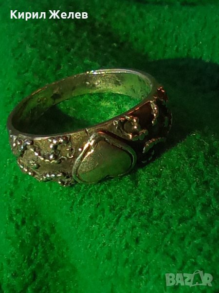 СТАРИНЕН БЕЛ ЕПОК Стил ОРНАМЕНТИРАН СРЕБЪРЕН ПРЪСТЕН СРЕБРО 925 РЪЧНА ИЗРАБОТКА със СЪРЧИЦЕ 34378