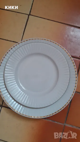 Бял порцелан със златист кант. 12 бр. големи чинии -диаметър 27 см
