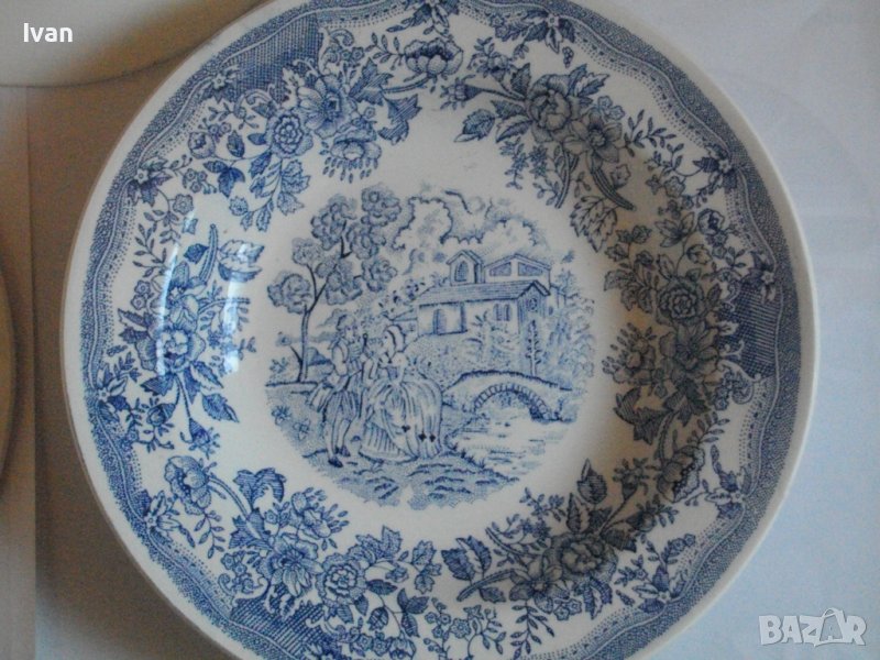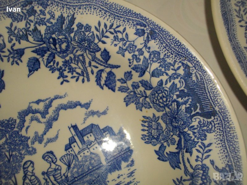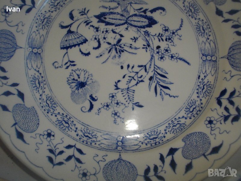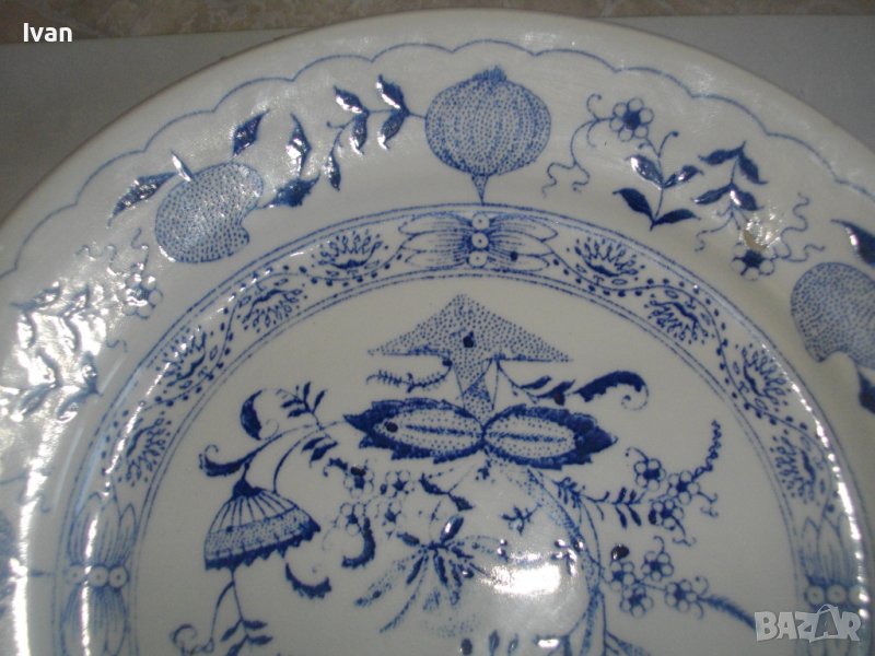По-малка чиния - среден размер - ф 205 мм. Плитка, за основно ястие. Мастилено син цвят на рисунките.