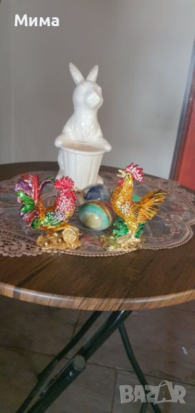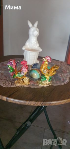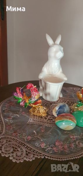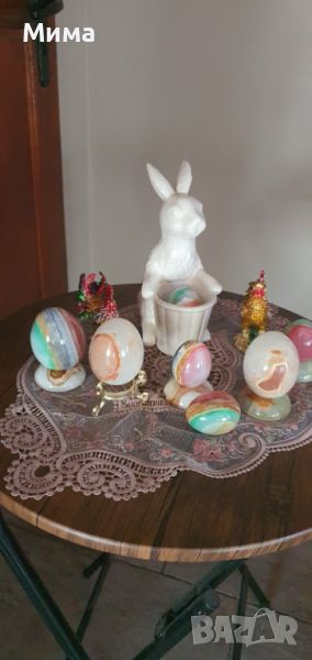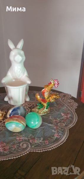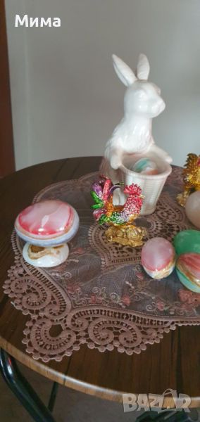 Метални бижутерки петли два модела. Цена за брой 45 лева. Яйца оникс голямо 20 лв. бр. малкото 15 лева без стойката. Стойка оникс 10 лева за брой. Заек порцеланов 20 лева