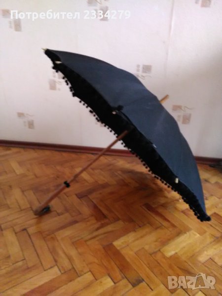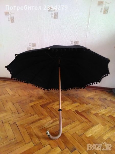 N:1 дамски чадър ръчна изработка,произход Англия добре запазен за годините си. Използван от аристократки- дами,направен от плат,кадифени топчета, обработено дърво( може би бамбук) и дръжка с орнаменти от кост или седеф. 100% автентичност от зо-те години рядко срещан не е сериен, а бутиков, дължина 75см.,цена 40€.; N:2 шапката,,капела" също стар атрибут на дамите от 30-40години, цена 10€.; N:3 чанта дамска много запазена цена 10€.