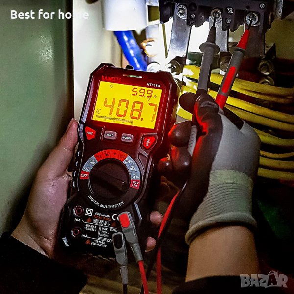 ШИРОКИ ПРИЛОЖЕНИЯ - Мултицет KAIWEETS HT118A измерва до 600 V AC/DC напрежение, 10 A AC/DC ток и 60 MOhms съпротивление, електрическият тестер тества също температура, капацитет, честота, работен цикъл, включване-изключване на проводника и тестови диоди и непрекъснатост.