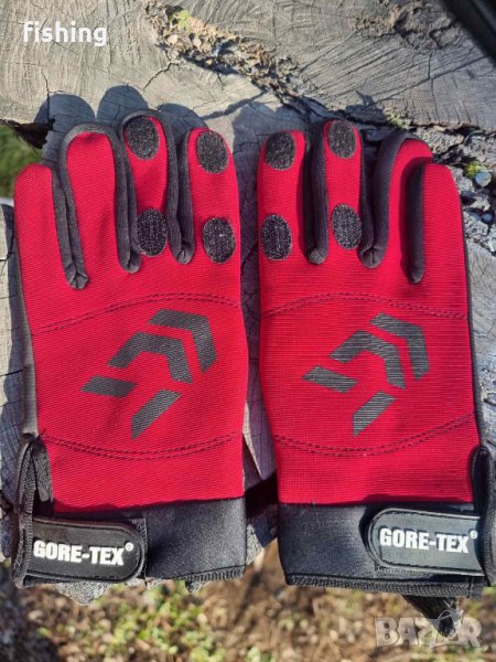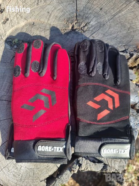 Gortex ръкавици с възможност за откриване на три пръста. Дланите са гумирани за по-голямо удобство при използване. Притежават светлоотразителен елемент, ширината на китките се регулира с велкро лента с логото на Daiwa. Размер: Универсален