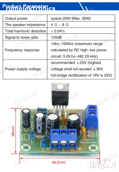 Кит за сглобяване 30W, 12-30V, 4-8 Ohm. Размери на платката 46,5х38мм.