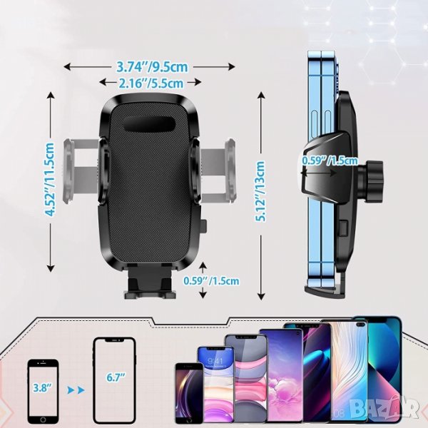 Универсална стойка за телефон с вакуум и удължено рамо, за по-добра видимост.