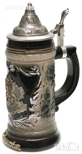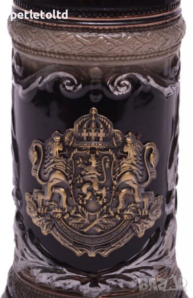 - Чашата е декорирана с красиви релефни орнаменти и метална пластинка - ГЕРБ на Р. България и надпис BULGARIA