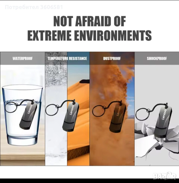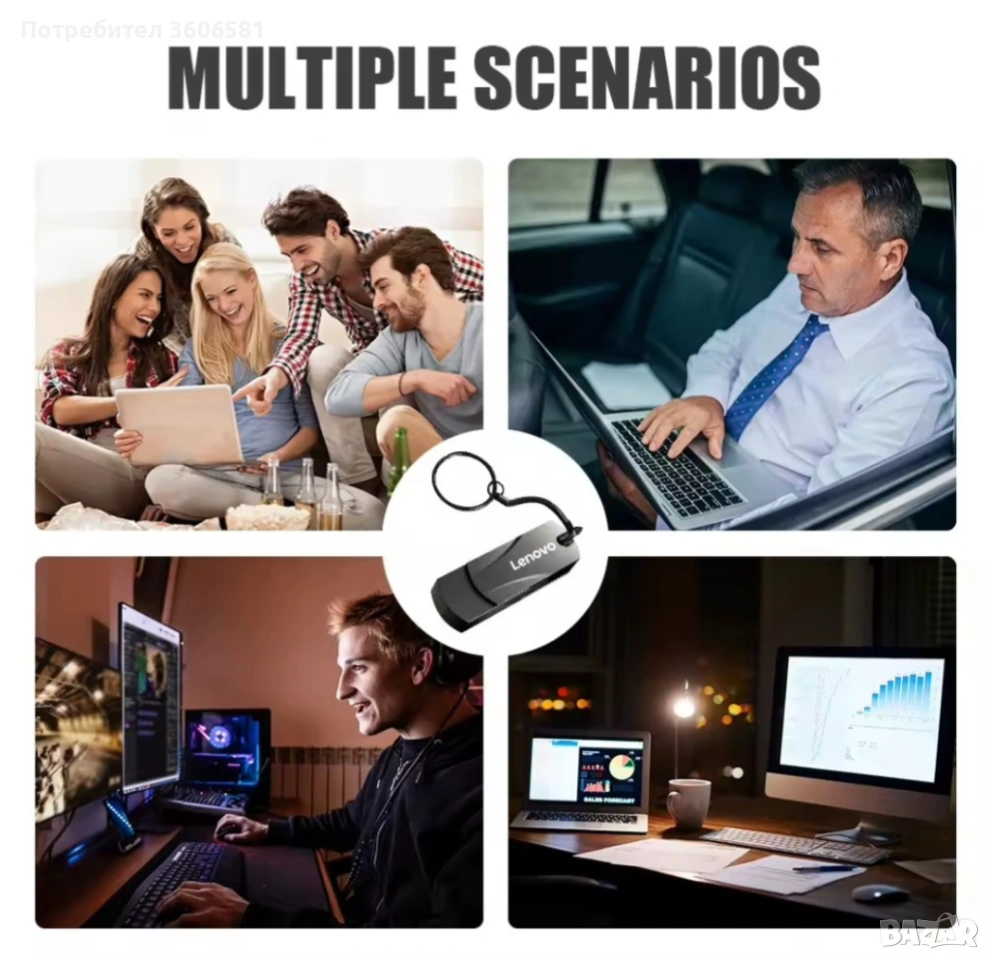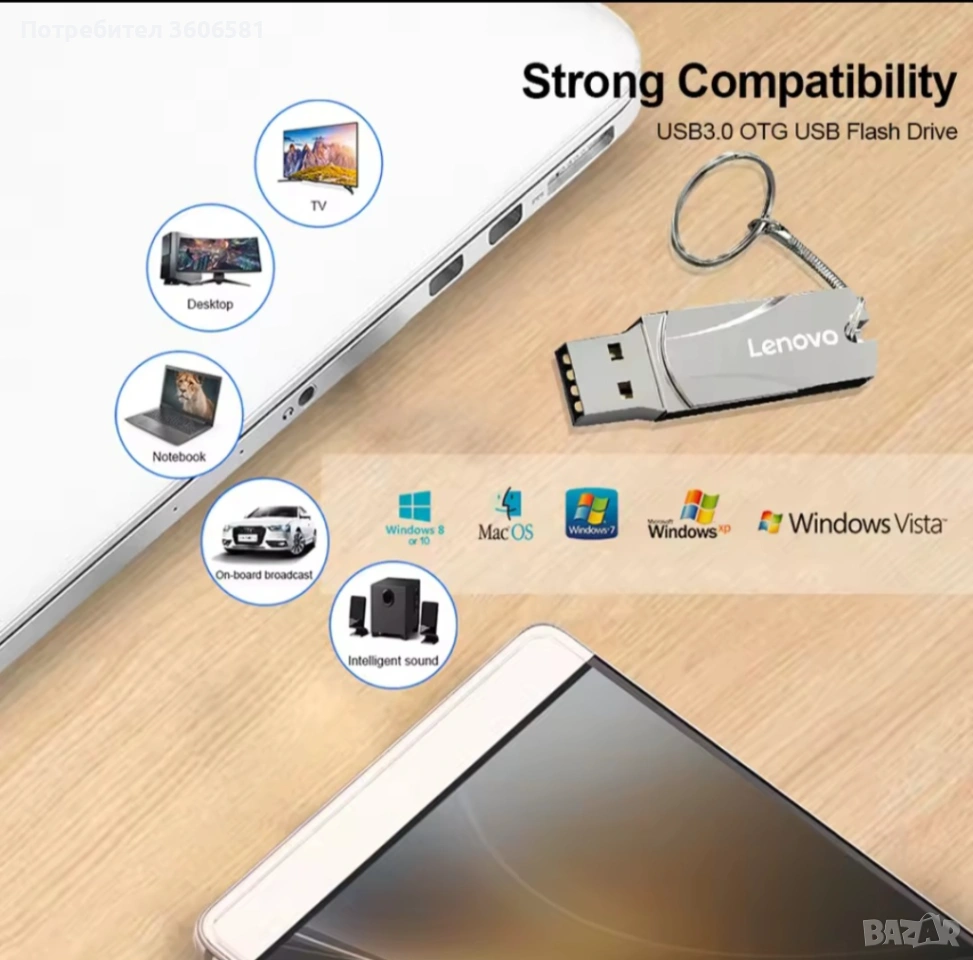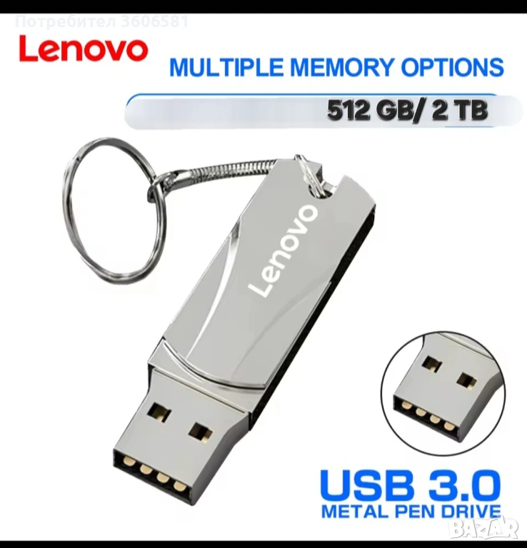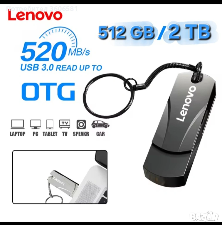 Lenovo 15€ - 2ТБ(около 520-550 ГБ реални) флаш диск + адаптер от USB към тип C/букса за смартфон/ - до 270 mbps