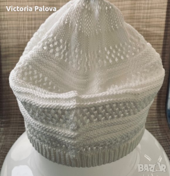 Неизползвана,но изпрана красива нежна шапчица,която може да се носи и като баретка,памук.шапката е повече за стил и гламур,отколкото за фунционал:)