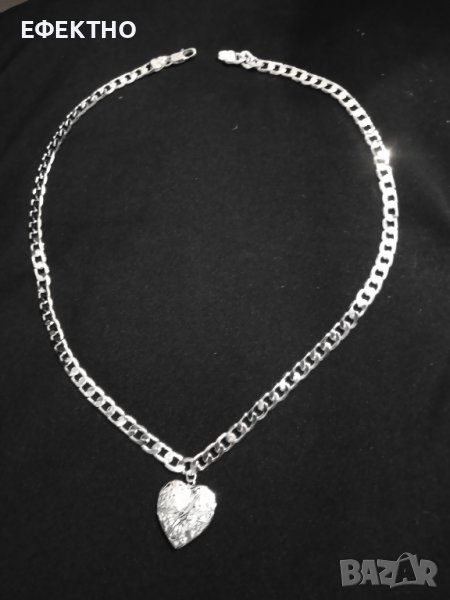 Ново, сребърно колие с масивно сърце. В подаръчна кутия → Обява 39652436