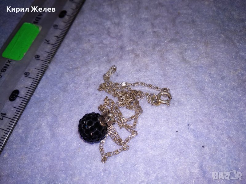 ФИНО СРЕБЪРНО КОЛИЕ СРЕБРО 925 ВЕРИЖКА с РЕТРО ПЛЕТКА МЕЧА СТЪПКА и КРИСТАЛЕН МЕДАЛЬОН с ЕМАЙЛ 32392