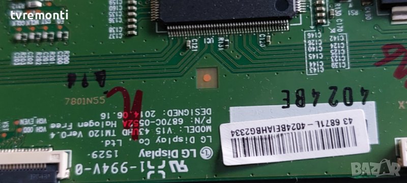 T-Con 6870C-0552A 6871L-4024B FOR PHILIPS 43PUT4900/12 TPT430U3-EQYSHM.G REV.S1C борда е гарантирано работещ Демонтиран от телевизор PHILIPS модел 43PUT4900/12 със счупен дисплей TPT430U3-EQYSHM.G REV.S1C тествана от нашия техник