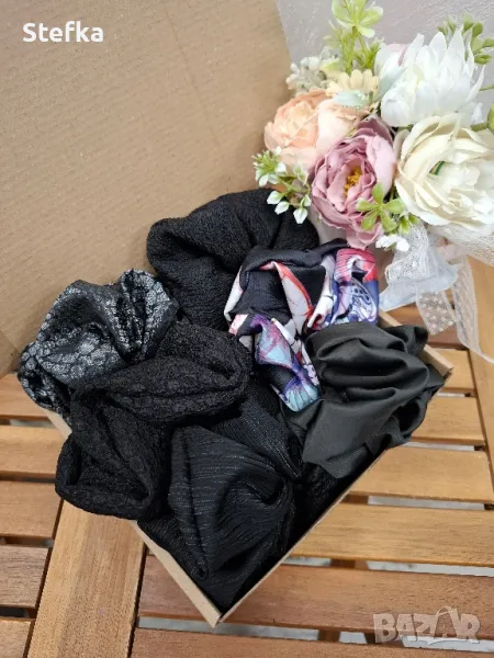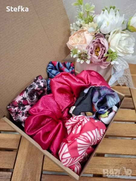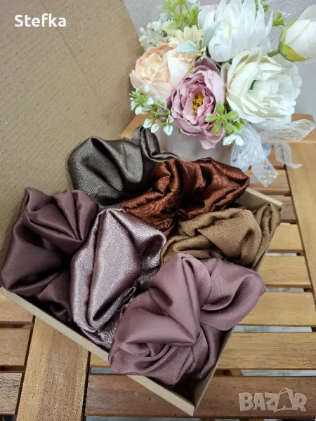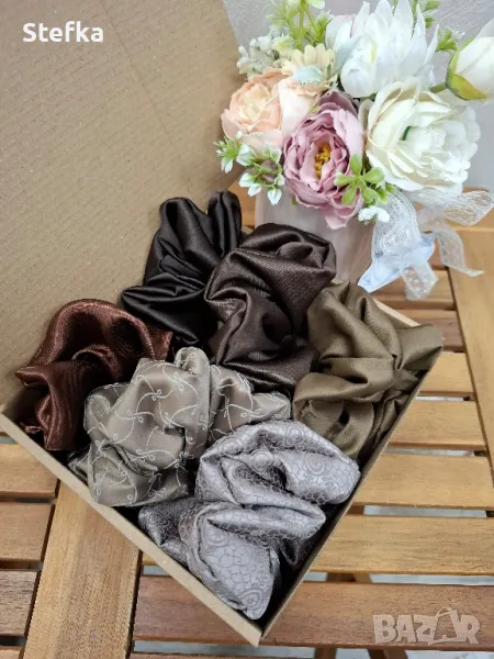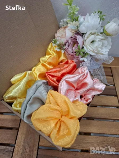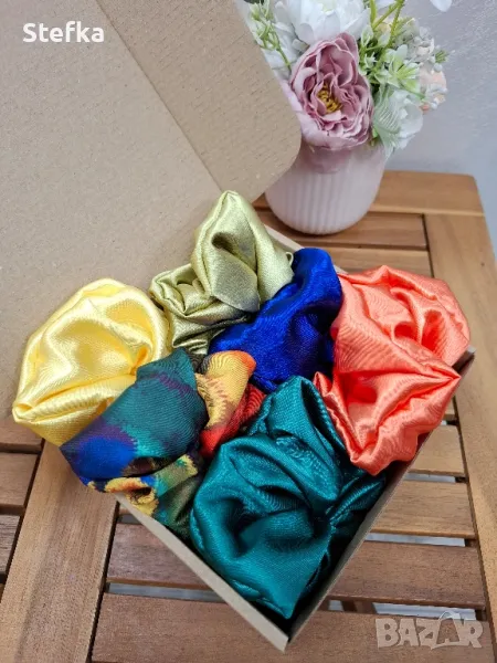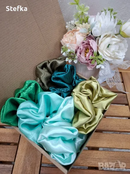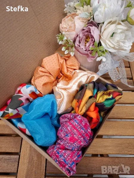 изключително практичен подарък за всяка една дама. Зарадвайте приятелка, колежка, а защо не и себе си с цветните комплекти скрънчита. Всички са с вграден фабричен ластик за по-голяма устойчивост на разтягане. Може да комбинирате по избор от всички над 140 разцветки. Комплект от 6 броя - 20лв, цена за един брой 4лв.