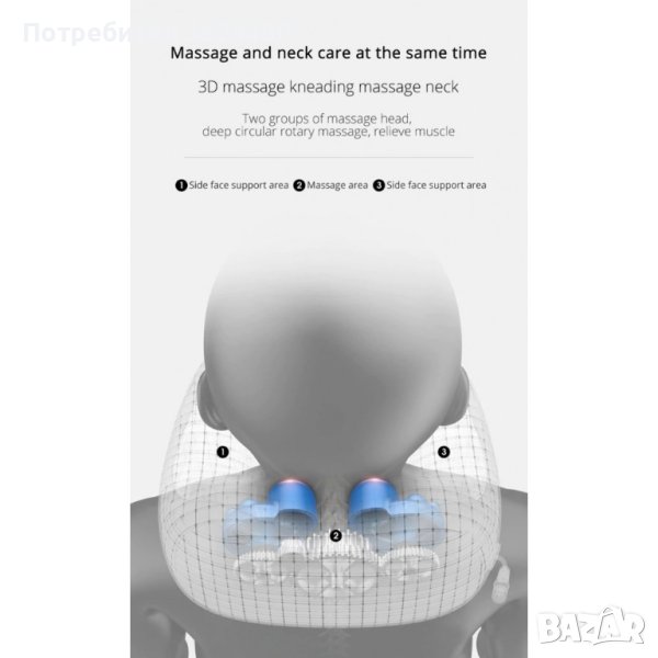 Изключително приятен и благотворен масаж на врата, който намалява болка, скованост и напрежение в областта с помощта на кръгообразни движения. Можеш да избираш силата и скоростта му.