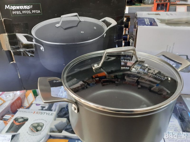 Чисто нова тенджера виско качесто издръжлива до 372 градуса ,мостра от магазин в Германия,без забележки по нея,само по картонената опаковка в сникмките ще покажа.