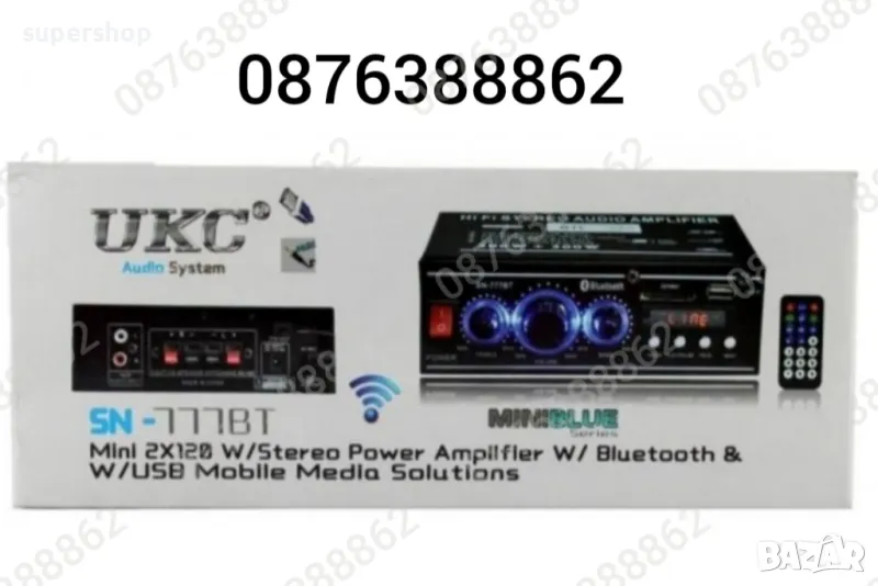 Двуканален Bluetooth стерео усилвателят UKC SN-777BT е интегрален усилвател с вграден медиен плейър и FM тунер, с поддръжка на USB флаш памети и SD/MMC карти с памет и с Bluetooth.
