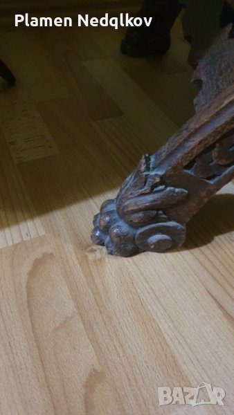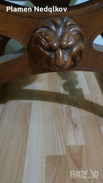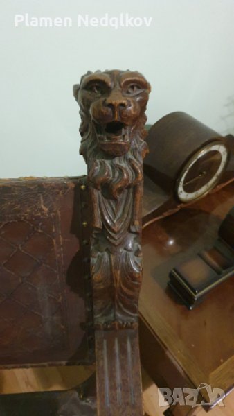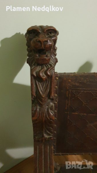 Масивен стар стол със орнаменти,глава и крака на лъв → Обява 39663658