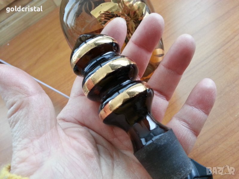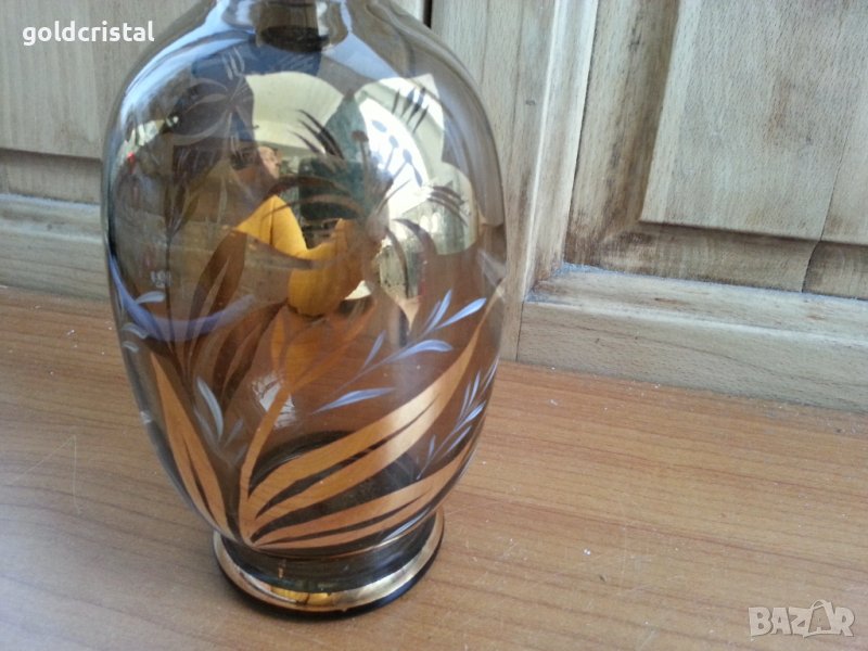 Гарафа Бохемия с много позлата цветно стъкло Ретро арт декор винтидж колекция стари антикварни предмети обзавеждане за дома и семейството подходяща за подарък за ценители и колекционери