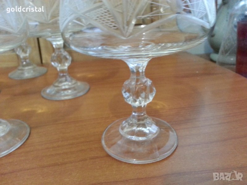 Стари български кристални чаши ръчно гравирани 6 бр -85лв същите чаши без гравюра 6 бр-55лв сервиз комплект сет лот ретро арт декор винтидж колекция стари антикварни предмети обзавеждане за дома и семейството подходящи за подарък за ценители и колекционери