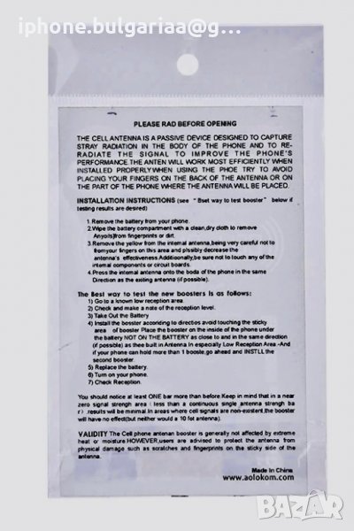 Стикер антена за усилване на телефонния сигнал за мобилни телефони.