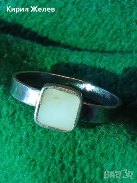 СТАРИНЕН СРЕБЪРЕН АР ДЕКО ПРЪСТЕН ВИСОКА ПРОБА СРЕБРО с ШЛИФОВАН БЯЛ КЕХЛИБАР 18091