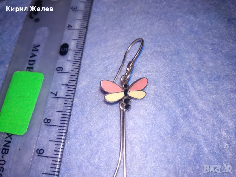 НЕЖНА СРЕБЪРНА ПЕПЕРУДКА АРТ ОБЕЦА СРЕБРО 925 с ЦВЕТЕН ЕМАЙЛ 34611