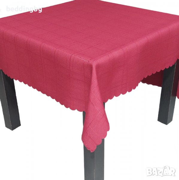 Покривки, различни размери изработени от висококачествен полиестер, имитиращ лен. Покривката не се свива след пране, няма нужда от гладене и запазва яркостта на на цвета. Произвежда се в различни размери за правоъгълна и кръгла маса. Подходяща за ежедневно ползване.
