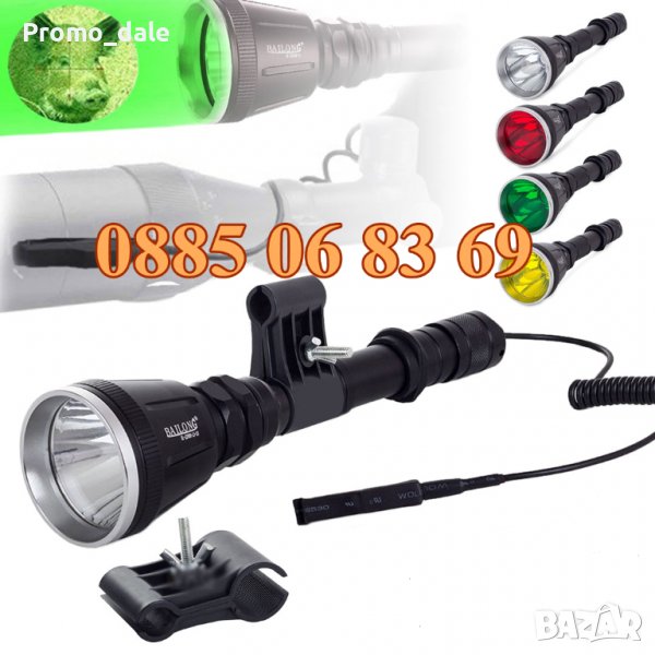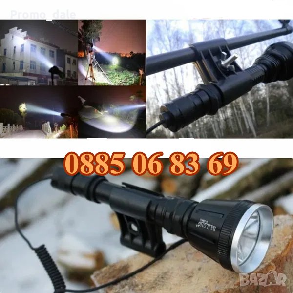 Мощен LED фенер BL-Q2888-T6 с изключително силен светлинен лъч и стабилен фокус, осигуряващ осветеност до 300 метра. Акумулаторният фенер е със стойка за монтаж на оръжие, отделна капачка със спусък. Ловният прожектор работи с качествен CREE T6 LED диод с висока яркост от 1000lm!