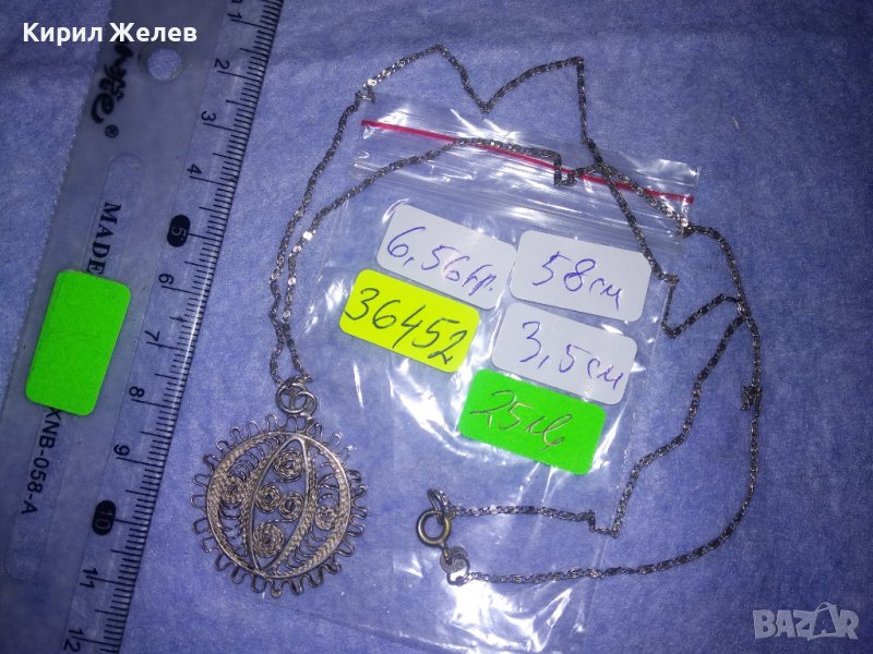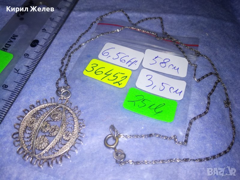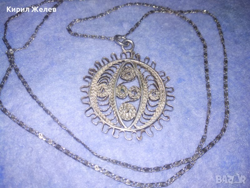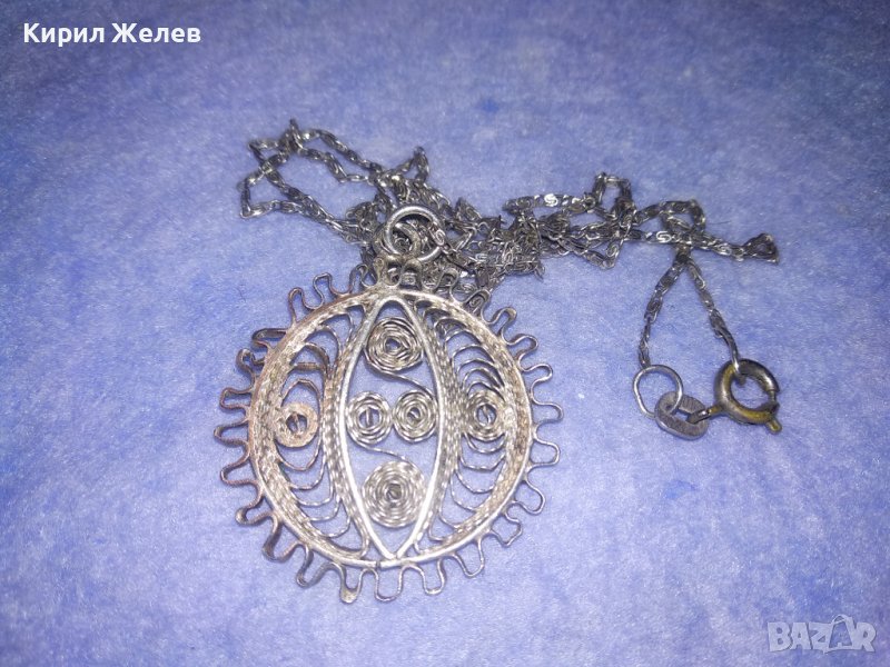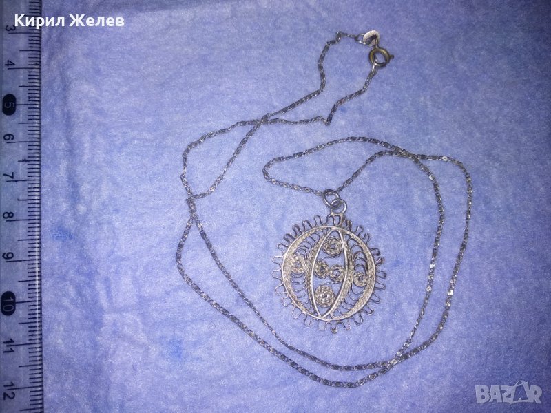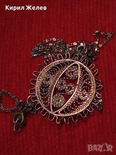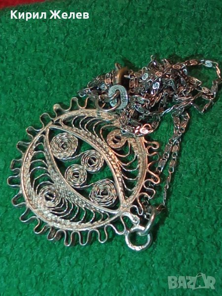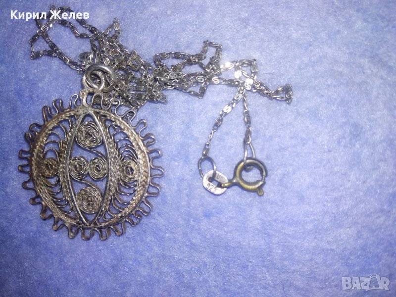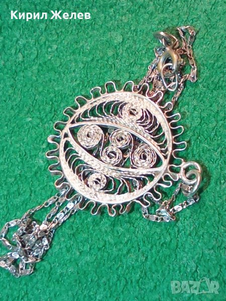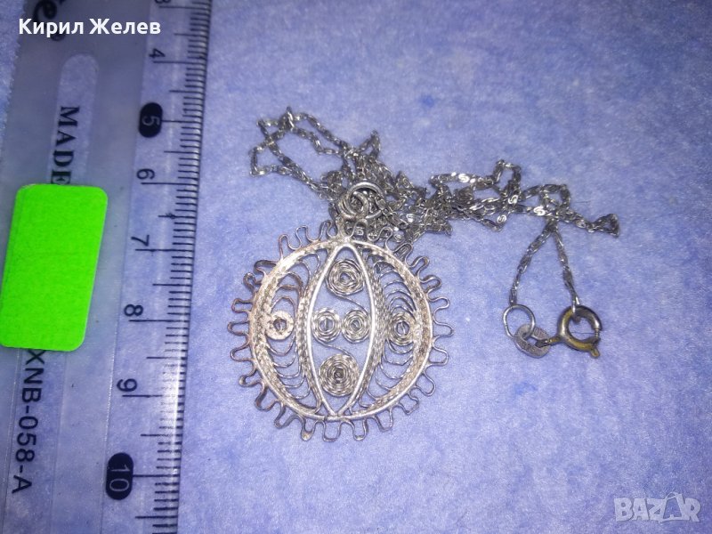 ФИЛИГРАНЕН СРЕБЪРЕН ПЕНДАНТ със СРЕБЪРНА СРЕБРО 925 ВЕРИЖКА ФИНА МАЙСТОРСКА РЪЧНА СТАРА РАБОТА 36452
