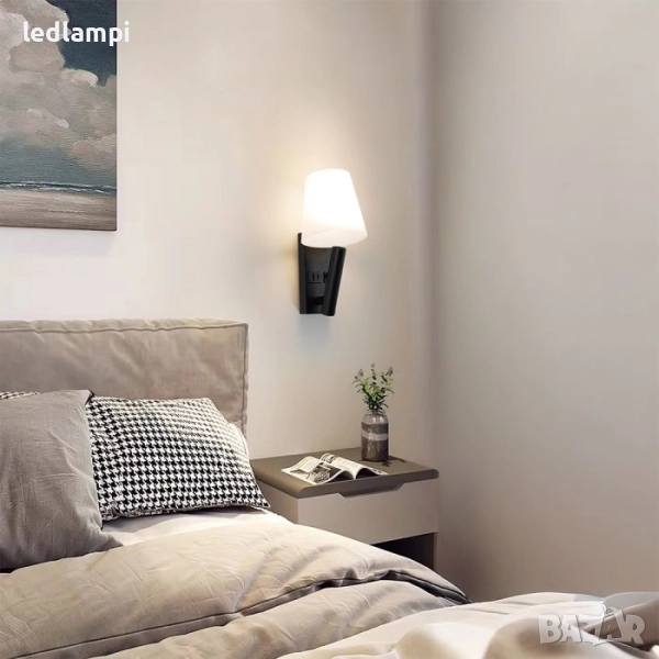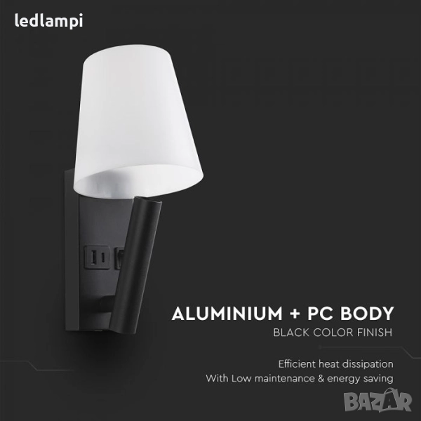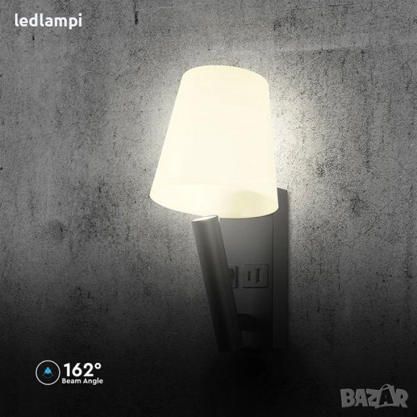 LED Аплик 2W С USB/PD Порт Черен Топло Бяла Светлина