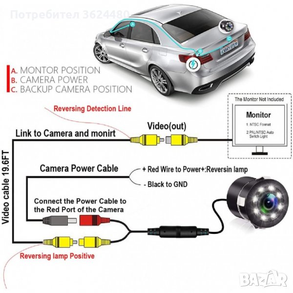 Камера за задно виждане за автомобил - Водоустойчива → Обява 39672132
