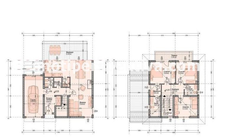 реф.9666 С АКТ 15!!! Предлагаме Ви прекрасна новостроящa се къщa в с. Марково, на 4км от гр. Пловдив. Заради естествената денивелация на терена, къщата има чудесна панорама както към града, така и към планината,която се вижда от снимките.Къщата разполага с двор 380м2, а разгънатата застроена площ 189 м2., свързана с водопроводната и канализационна мрежа . Къщата ще се изгради на два етажа, с 3м височина на помещенията осигурявайки повече светлина и простор, дограмата е PVC петкамерна с трислоен пакет-тип френски прозорец , тухли Wienerberger Porotherm, 10см външна изолация. Системите за топло, хидроизолация и дограма отговарят на стандартите за енергоспестяваща къща .Къщaта разполага с веранда 21м.кв и тераса 18м.кв на второ ниво, които не са включени в квадратурата на къщата и са БОНУС към нея! АГЕНЦИЯТА СЪДЕЙСТВА С ВСИЧКО НЕОБХОДИМО ДО ПРИКЛЮЧВАНЕ НА СДЕЛКАТА!!!