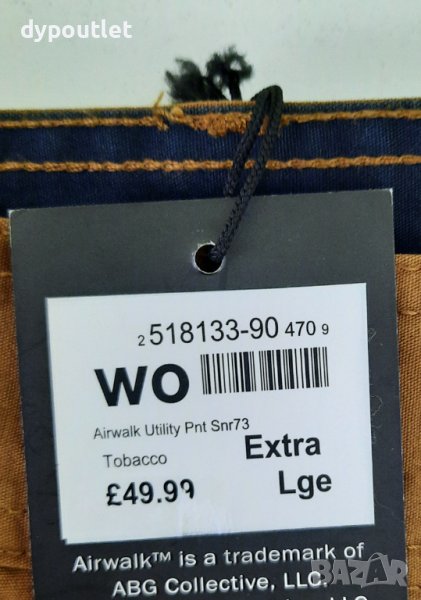 Airwalk - Мъжки панталони Utility, Тютюн, памучен, размер XL. Размери: XL - дължина 113 см., ширина горна част 50 см., ширина крачол долна част 22 см.. Състав - 100 % памук. Преглед и тест.