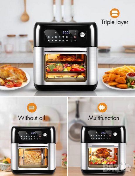 [Задоволяване на различни нужди]: Капацитетът е 10 L, който може да осигури здравословни и нискомаслени ястия за много хора! Много дълъг интервал за избор: функция за хляб 2 ~ 8 минути, функция за размразяване 10 ~ 45 минути. Изключително широк диапазон на контрол на температурата: 25 ~ 60 ℃ за размразяване, 80 ~ 200 ℃ за други функции за готвене. Почти може да отговори на вашите нужди.