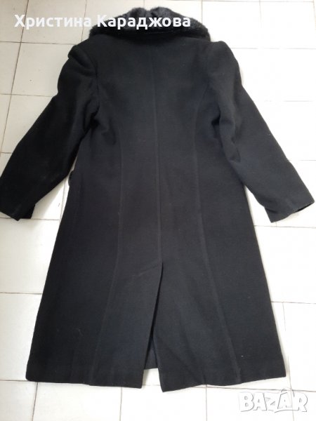 Дамско зимно палто черен цвят. Има подвижна яка от изкуствена кожа. Яката е подвижна и маже да се сваля. Палтото е прав модел с ревери и с два джоба. Отзад е с цепка.