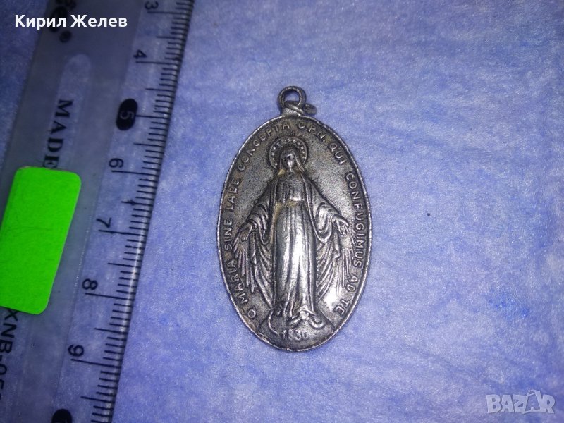 СТАРИННА ПОСРЕБРЕНА РИМОКАТОЛИЧЕСКА РЯДКА НАГРЪДНА ИКОНКА ДВУСТРАННА ИТАЛИЯ 34413