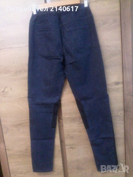 Интересен дънков клин,цвят индиго в комбинация с много стегнато трико; талия на ластик- от 33 до 42 см(общо талия от 66 до 85см);ханш-45(общо до 92 см).Пише XS,но е по - голям.крачол-79см.