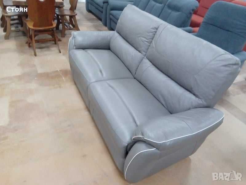 Сив кожен диван тройка - естествена кожа → Обява 39675911
