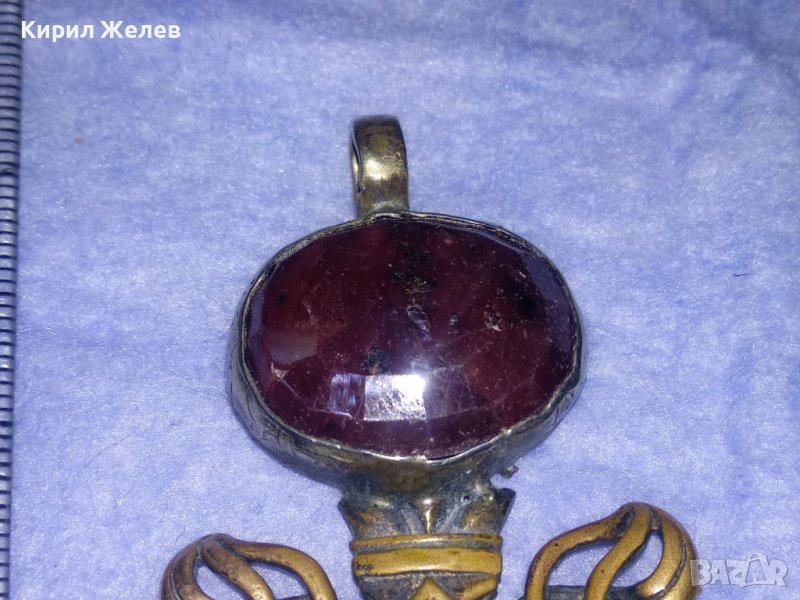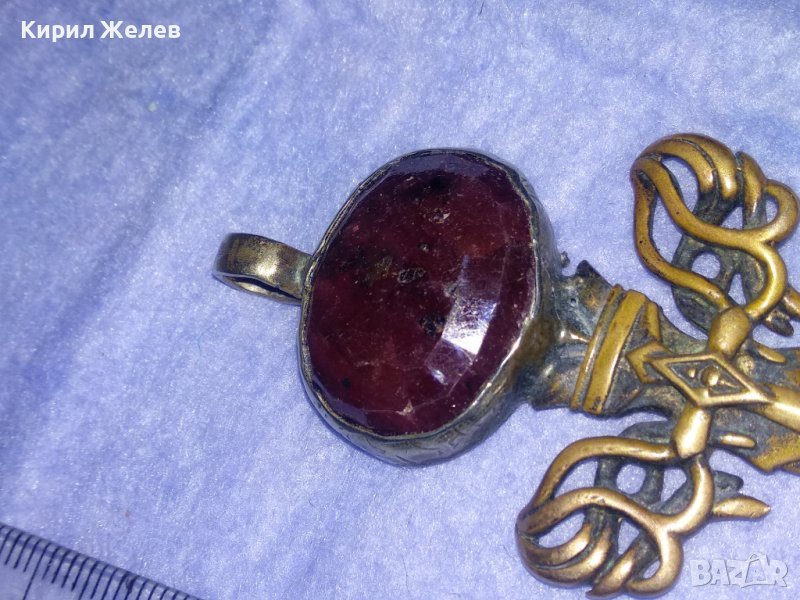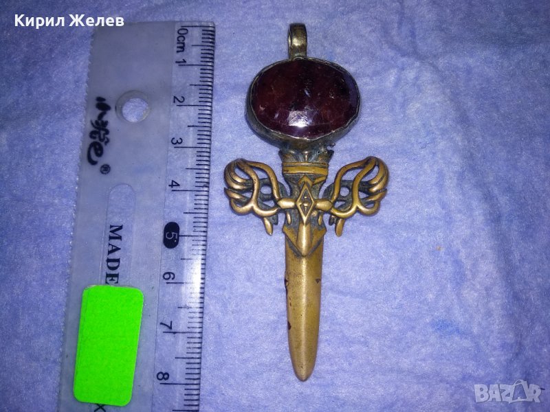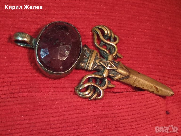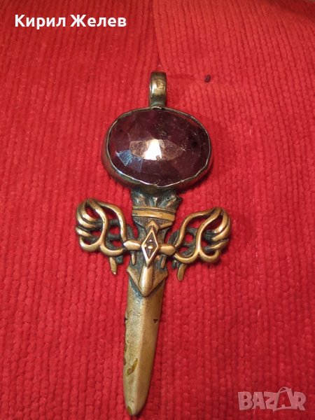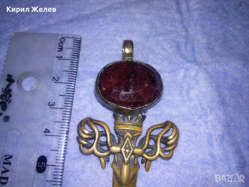 ГОЛЯМ БРОНЗОВ НЕО БАРОК ВИНТИДЖ АРТ ПЕНДАНТ МЕЧ с ПЕЧАТ 925 и ЮВЕЛИРНО ФАСЕТИРАН ЧЕРВЕН КАМЪК 34435