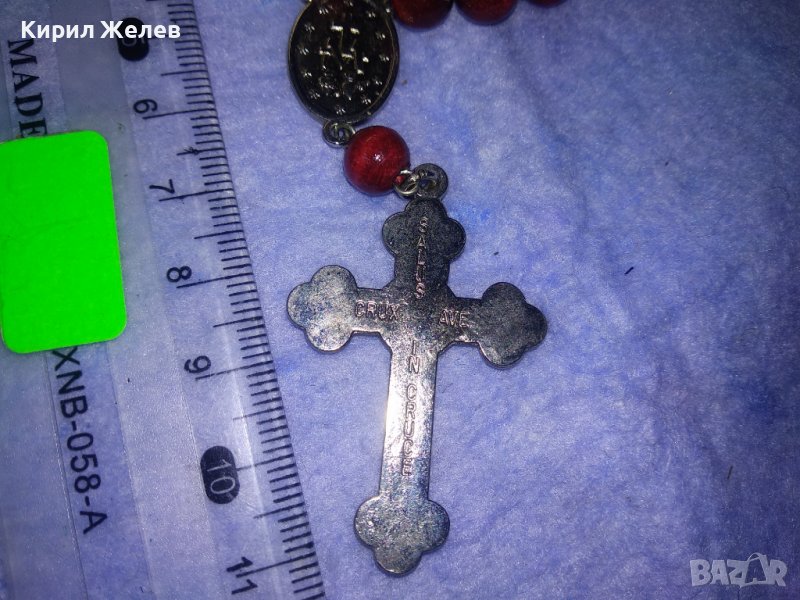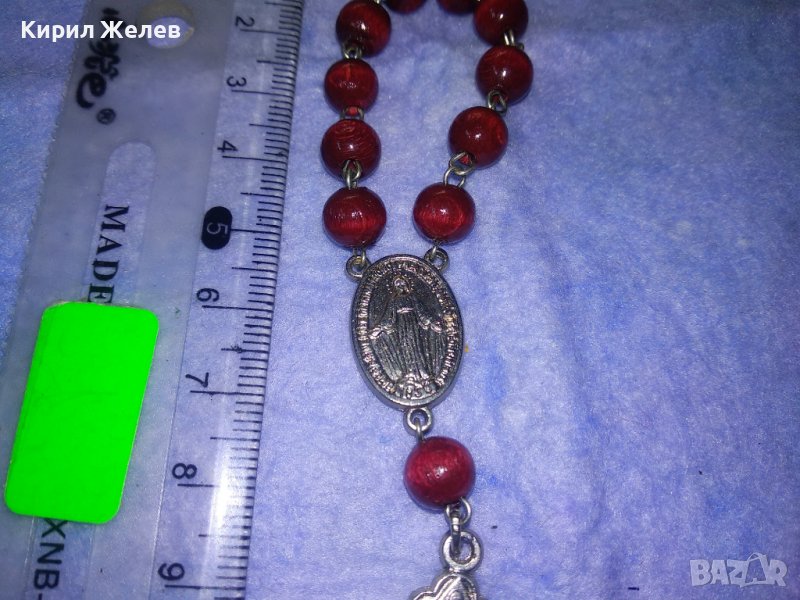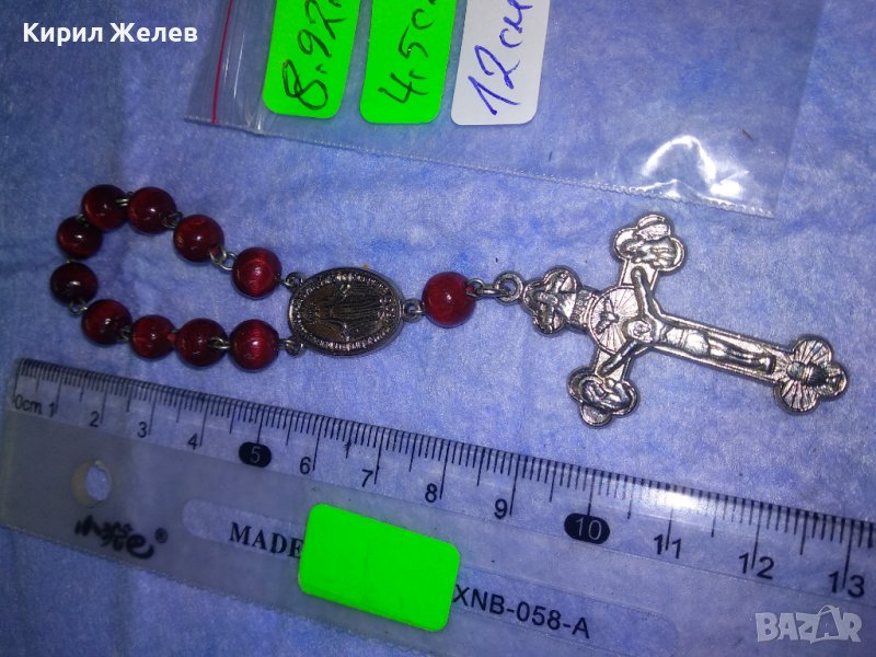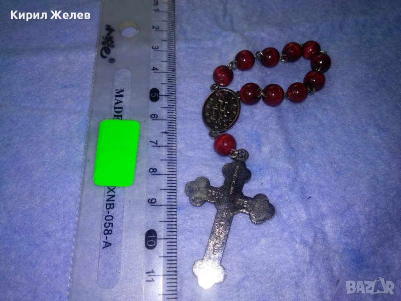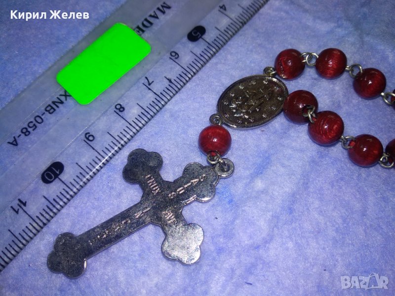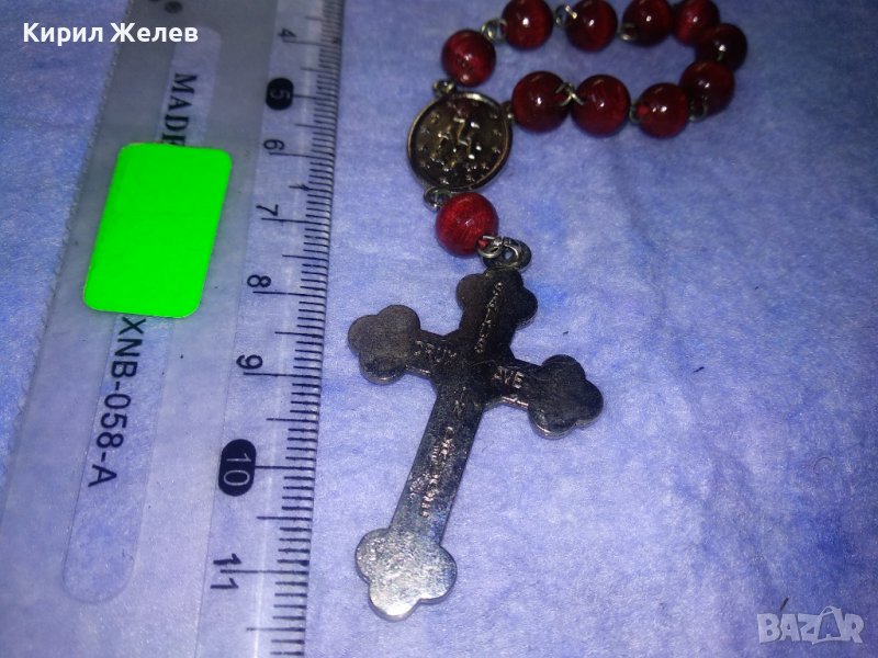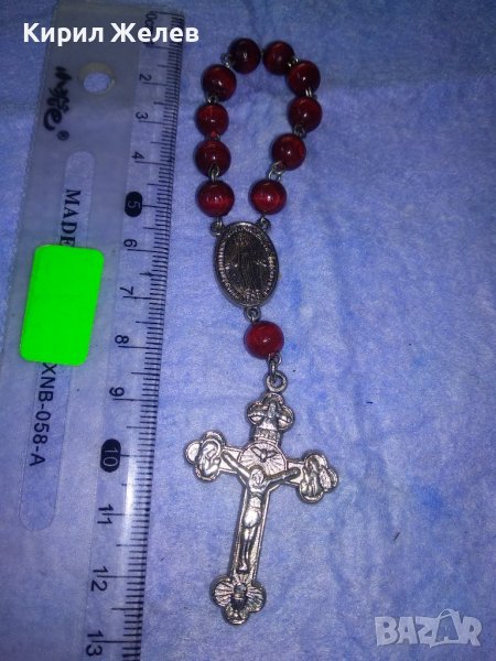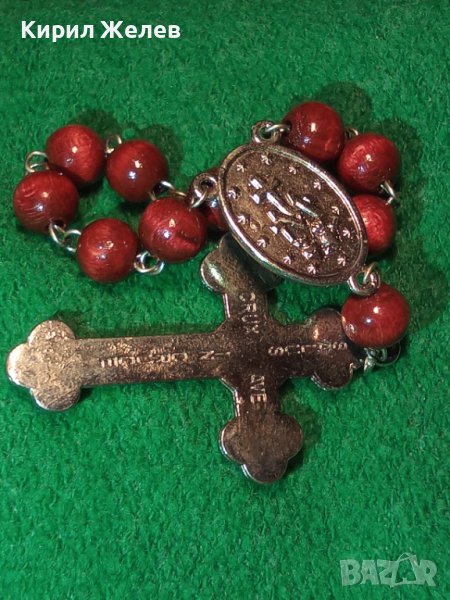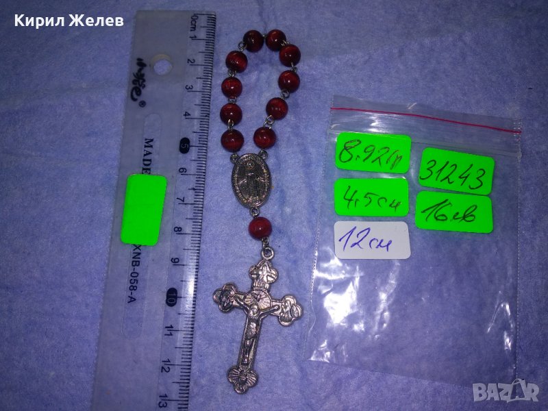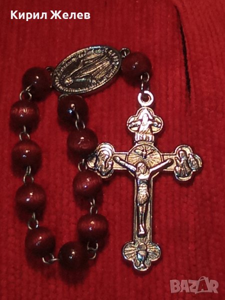 РИМОКАТОЛИЧЕСКА МИНИ БРОЕНИЦА със СРЕБРИСТИ РАЗПЯТИЕ и ОКОНКА и ЛАКИРАНИ ДЪРВЕНИ ЗВЕНА 31243