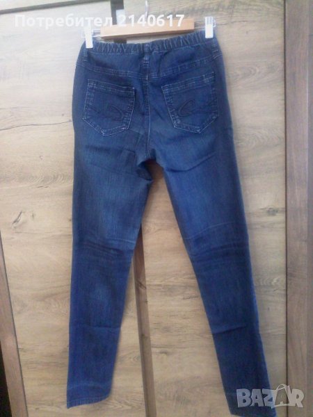 Клин цвят деним,ластичен колан с гайки,много еластичен,талия от72до92см;ханш от 88до98 см;дължина крачол-82см