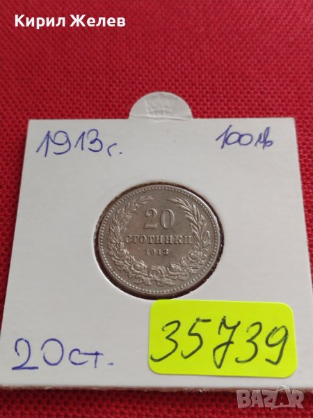 МОНЕТА 20 стотинки 1913г. ЦАРСТВО БЪЛГАРИЯ УНИКАТ ПЕРФЕКТНО СЪСТОЯНИЕ ЗА КОЛЕКЦИОНЕРИ 35739